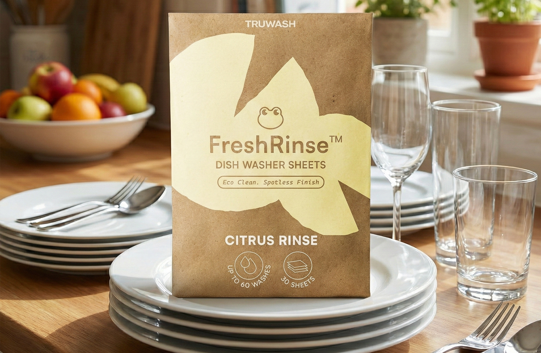 Enjoy beautifully clean, fresh-smelling dishes with zero plastic waste. Pure care for your family and planet.