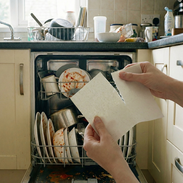 Good old baking soda — nature's deodoriser. It lifts food residues, neutralises odours, and leaves your dishes, glasses, and cutlery genuinely sparkling clean with zero chemical aftertaste.